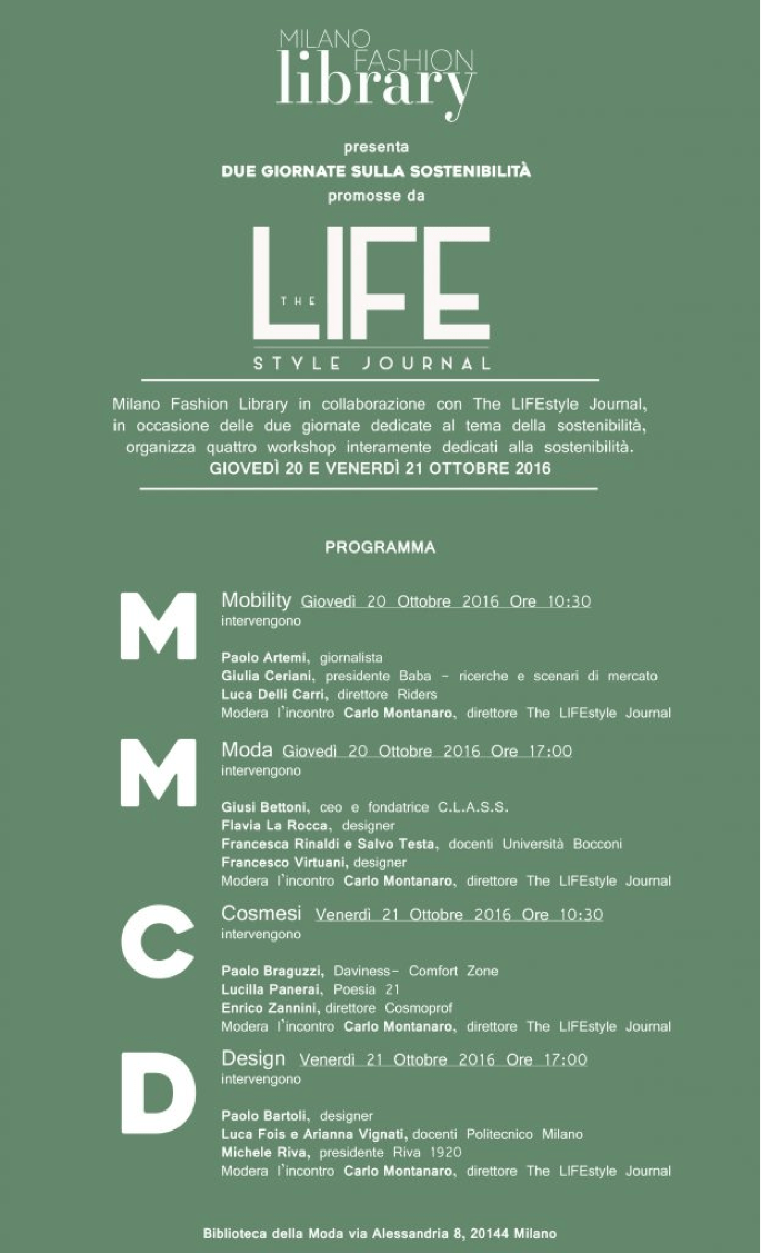 L’evento è promosso da The LIFEstyle Journal e si terrà il 20 e il 21 ottobre presso la Biblioteca della Moda, a Milano.